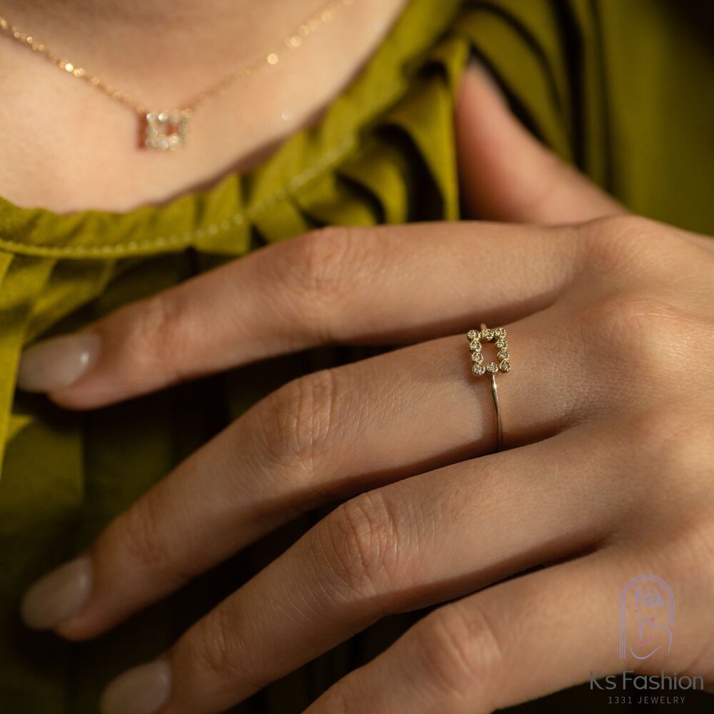 「金方輝石」結合方形的簡約美感和10K金的奢華,點綴著微小但閃亮的0.05克拉鑽石,象徵著獨特而珍貴的時刻。