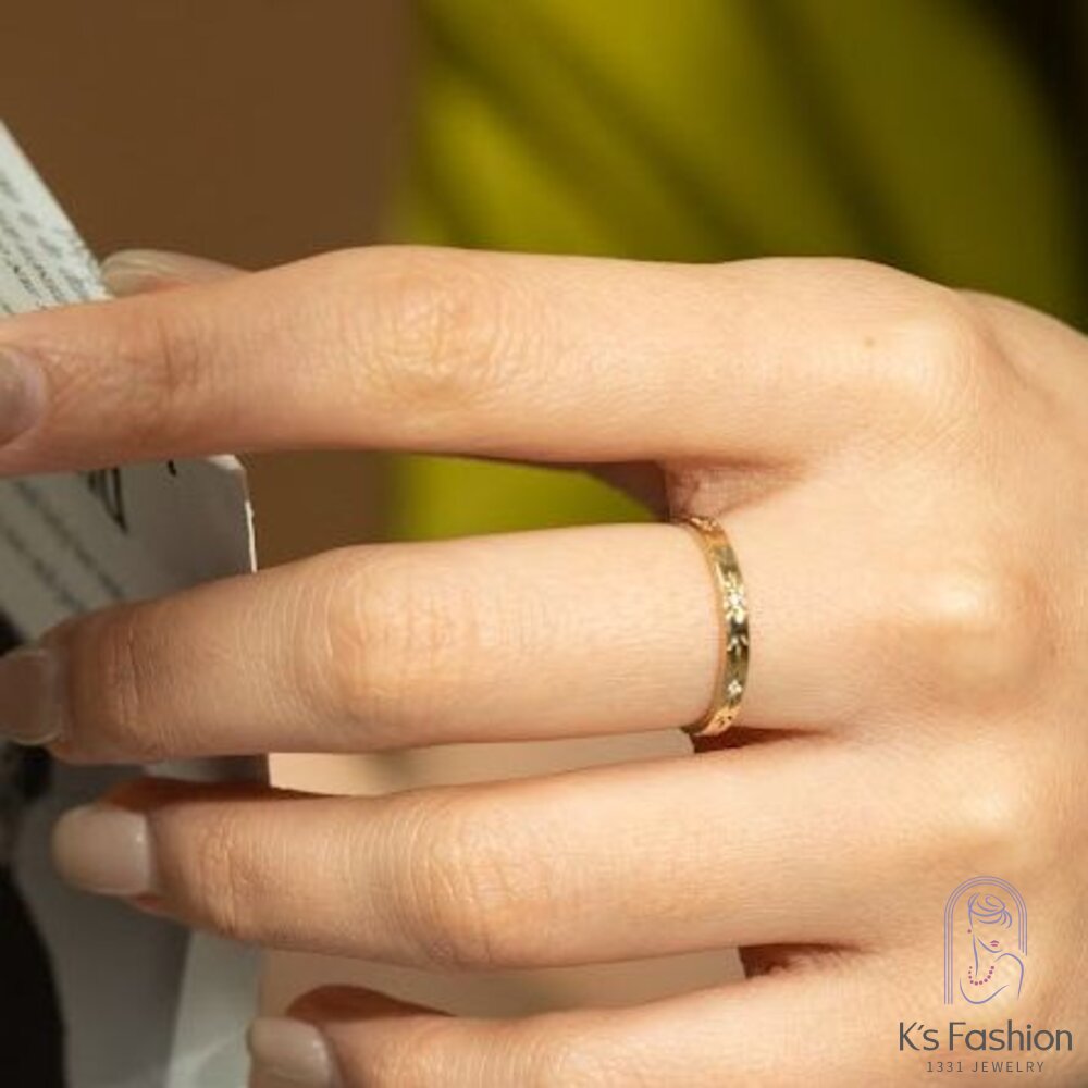 「金花雕典雅戒」融合花雕細節與10K金材質,呈現出一份典雅而浪漫的設計。微小的0.01克拉鑽石如同戒指上的星辰,為愛情故事添上閃耀的一頁。